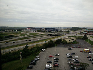Photo 1: View from Adams Mark Hotel of the football & baseball stadiums (in the distance)