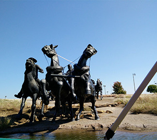 Photo 1: long view of the land run statues along the tour in Bricktown